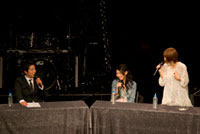 第1部では、ラジオ番組「喰霊-零- 超自然災害ラジオ対策室」がライブで実現することになりました。番組おなじみのパーソナリティ、土宮神楽役の茅原実里さん、諌山黄泉役の水原薫さん、桜庭一騎役の白石稔さんがステージに登場するのですが、照明もつかないうちから観客より「みのる」コールがわき起こるなど、もの凄い盛り上がりです。
