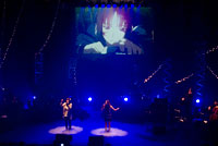 その次には、神楽のイメージソング「AI」をyozuca*さんが、黄泉のイメージソング「if」を飛蘭さんが歌い、そしてそのふたつが融合した「Reincarnation」がyozuca*さんと飛蘭さんの2人によって歌われます。ステージ後ろのスクリーンには、アニメ最終話での黄泉と神楽の対決も映し出され、美しい姉妹愛の悲しい結末が、見事にSHIBUYA-AXに再現されました。